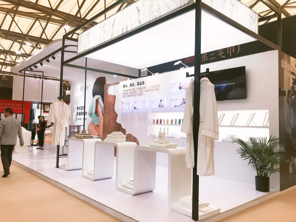 展會(huì) 2019 上海國(guó)際酒店工程設(shè)計(jì)與用品博覽會(huì) 4510 4月25日-27日,南通市第三毛巾廠有限公司攜中國(guó)風(fēng)作品,與各大酒店布草供應(yīng)商同臺(tái)競(jìng)技、交流。我司常年為國(guó)內(nèi)外高星級(jí)商務(wù)、度假酒店提供全品類布草產(chǎn)品,包括毛、浴巾,晚安巾,浴袍,地墊,床品,芯類,也是多家奢品酒店品牌指定亞洲制造商。 ? ?